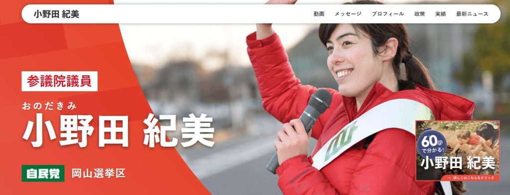 小野田紀美 公式サイト: https://onodakimi.com/