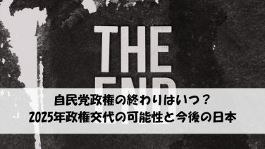 政治 自民党政権の終わりはいつ?2025年政権交代の可能性と今後の日本 この記事では、「自民党政権の終わりはいつ?」という疑問に焦点を当て、2025年の政権交代の可能性や今後の日本政治の展望について分かりやすく解説します。最新の政治動向や生活への影響もご紹介します。 2025.07.13 2025.12.03 政治