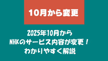 くらし 2025年10月からNHKのサービス内容が変更!わかりやすく解説 この記事では、2025年10月からのNHKサービス変更点を解説。新サービス「NHK ONE」の開始や、スマホでのネット視聴が受信料の対象になる条件などを分かりやすくまとめています。 2025.09.20 2025.12.11 くらし